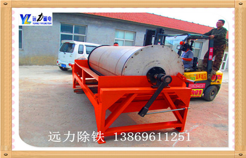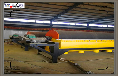 3、吸附階段:驅動機構帶動筒體勻速旋轉,筒體內部的磁系產生穩定的強磁場,礦漿中的強磁性礦物(如磁鐵礦、磁黃鐵礦等)在磁場力的作用下發生磁聚,形成“磁團”或“磁鏈”,并被吸附到筒體表面;弱磁性和非磁性礦物(如脈石)不受磁場影響,繼續隨礦漿在槽內流動。